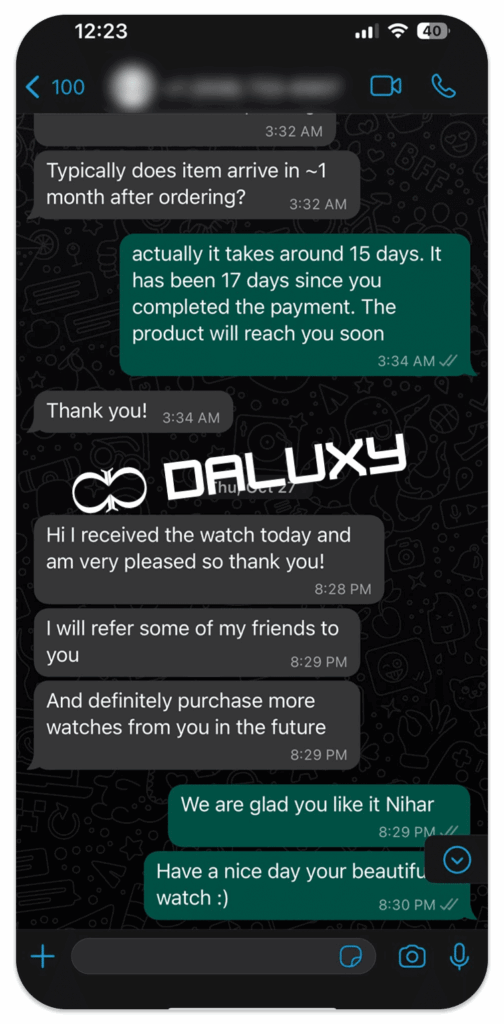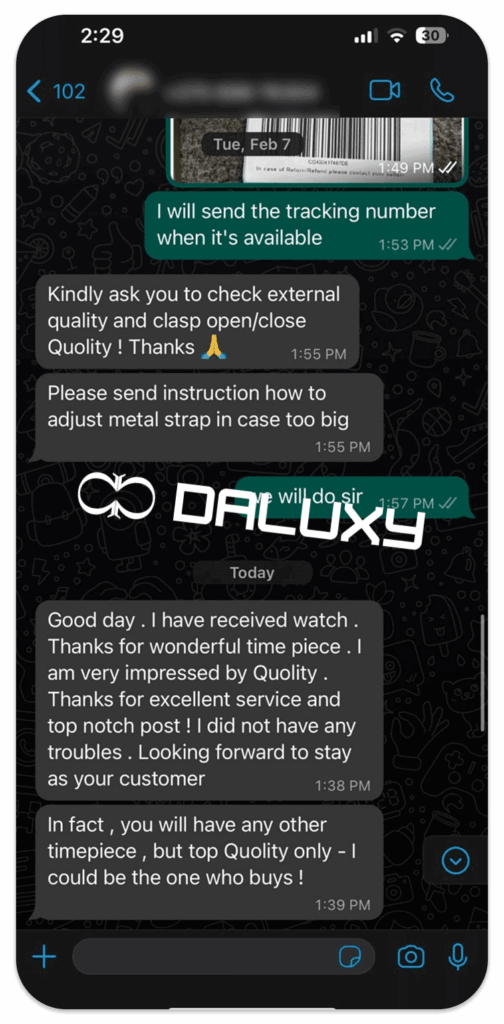 At DALUXY, we are dedicated to ensuring the happiness of our customers. We take great pride in sharing the opinions of our valued customers who have purchased replica watches and found our service to be excellent.